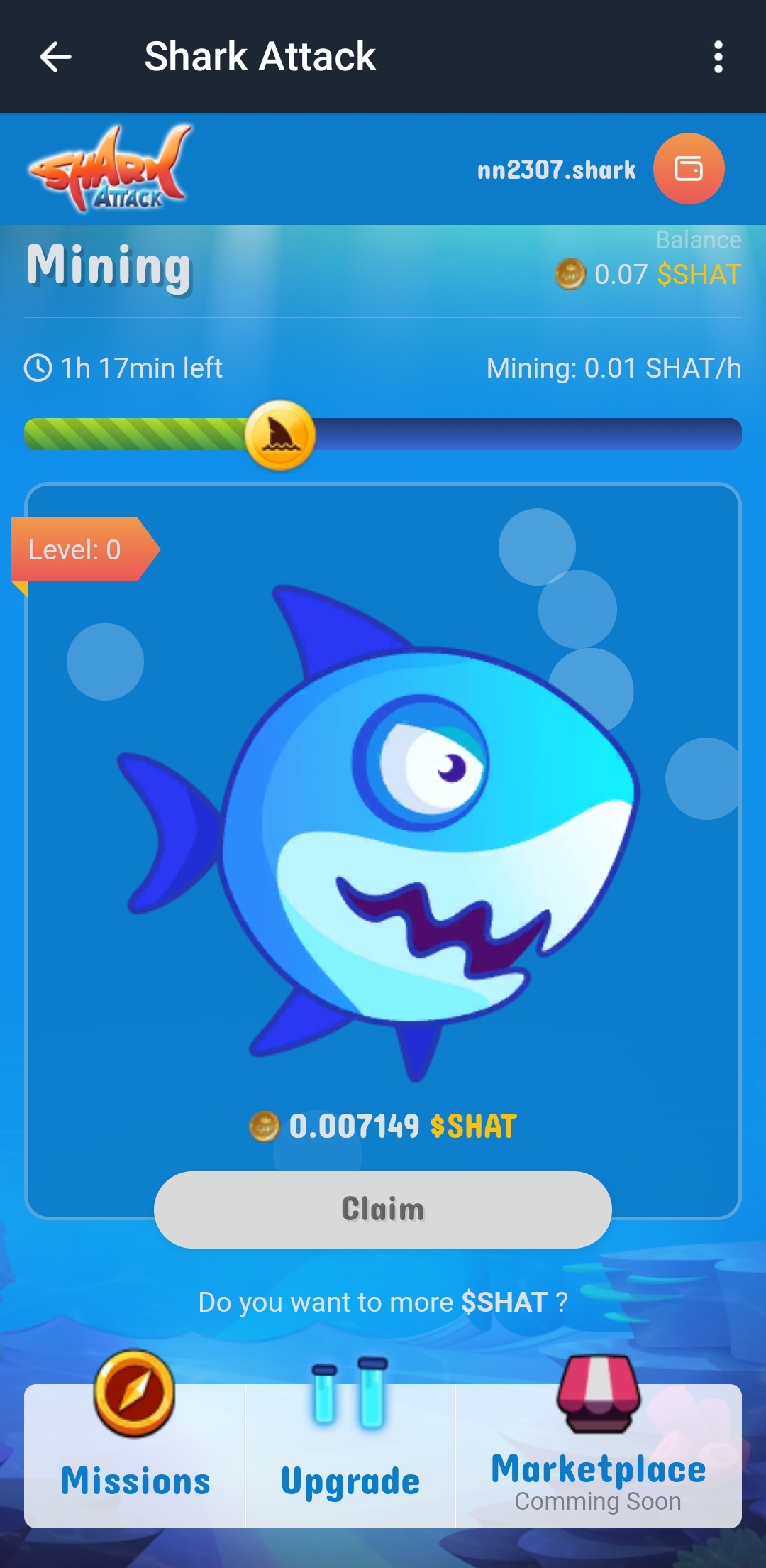 Token SHAT là trung tâm của hệ sinh thái Shark Attack. Quá trình đào SHAT sẽ bắt đầu ngay khi người chơi tạo ID trong trò chơi Shark Attack. Người chơi sẽ nhận được SHAT ngay lập tức khi nhấn vào nút “Claim”. Nếu kho đào đầy, quá trình đào SHAT sẽ dừng lại.