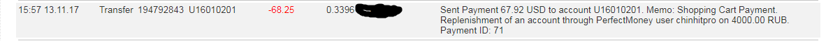 Giao dịch của 0.15 USD đến tài khoản U14479881 đã được hoàn tất thành công.Sent Payment: 3.38 USD to account U16010201 from U14479881. Batch: 194889304. Memo: Shopping Cart Payment. Replenishment of an account through PerfectMoney user vuhuynh0308 on 200.00 RUB.