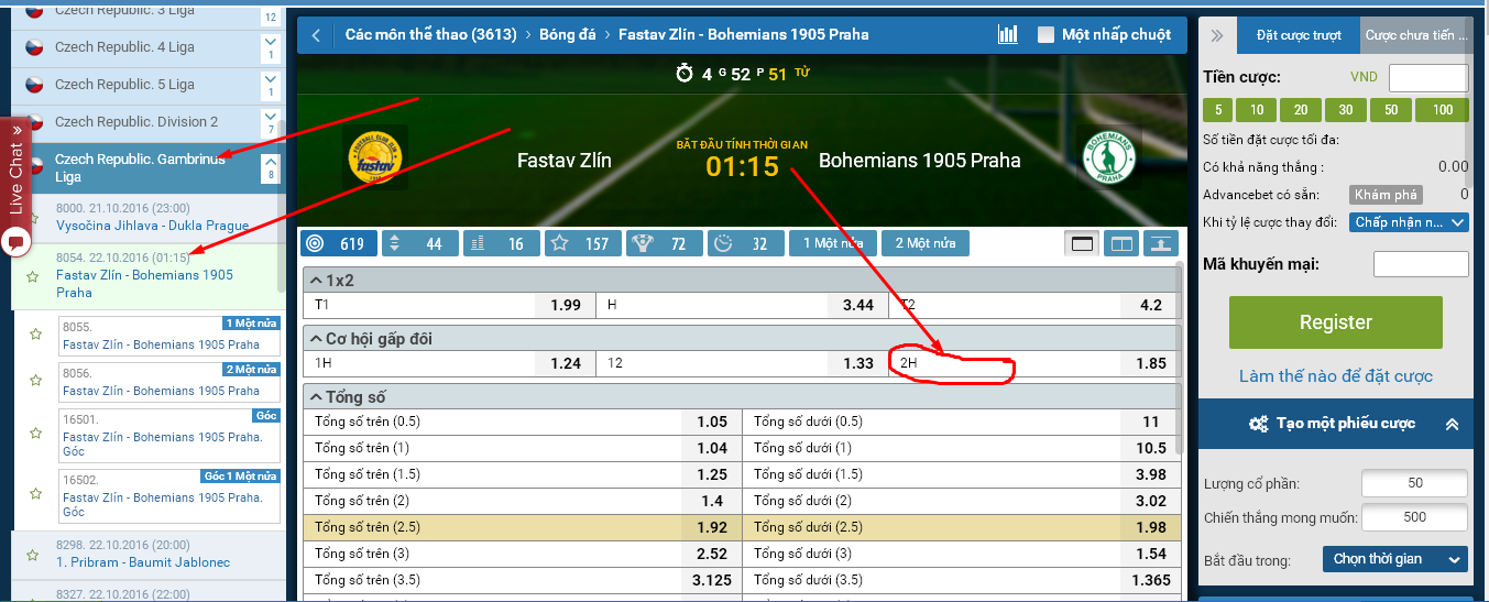 Cái bác là chơi running, đâm 2 trái là ăn rồi :D chỉ có bóng rổ mới tính từ 0-0 thôi ^^ còn bóng đá ko tính bàn thắng trước thời điểm cược