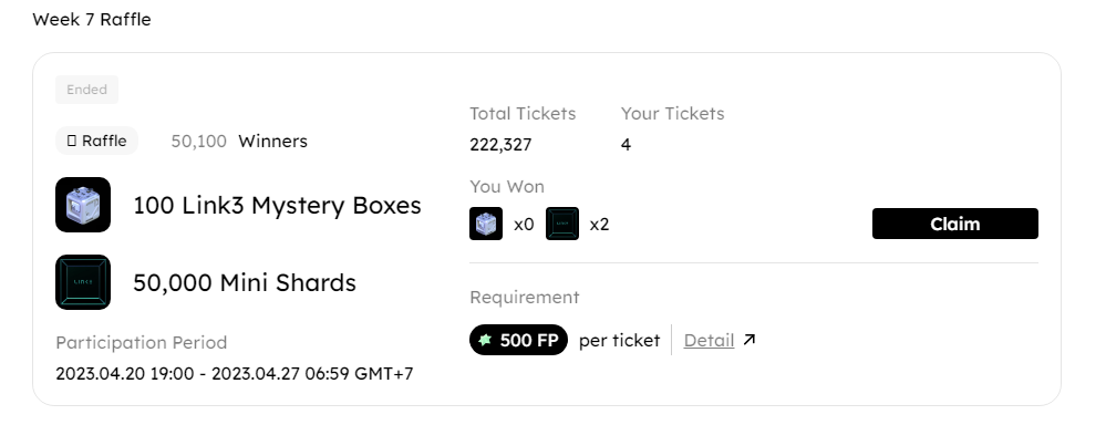- Đủ 500 point qua mục > Reward đổi vé random nhận BOX