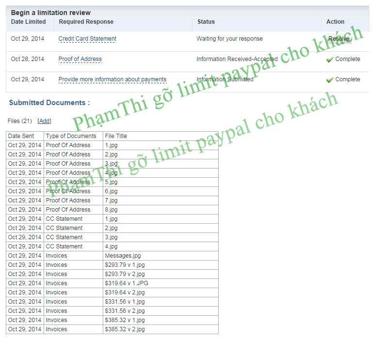 CHẮC CÁC EM ẤY BIẾT PHẠM THI GỠ LIMIT PAYPAL CHO KHÁCH NÀY NÊN NÓ CŨNG NẢN CHẲNG MUỐN EMAIL ĐÒI THÊM INVOICES GÌ NỮA,