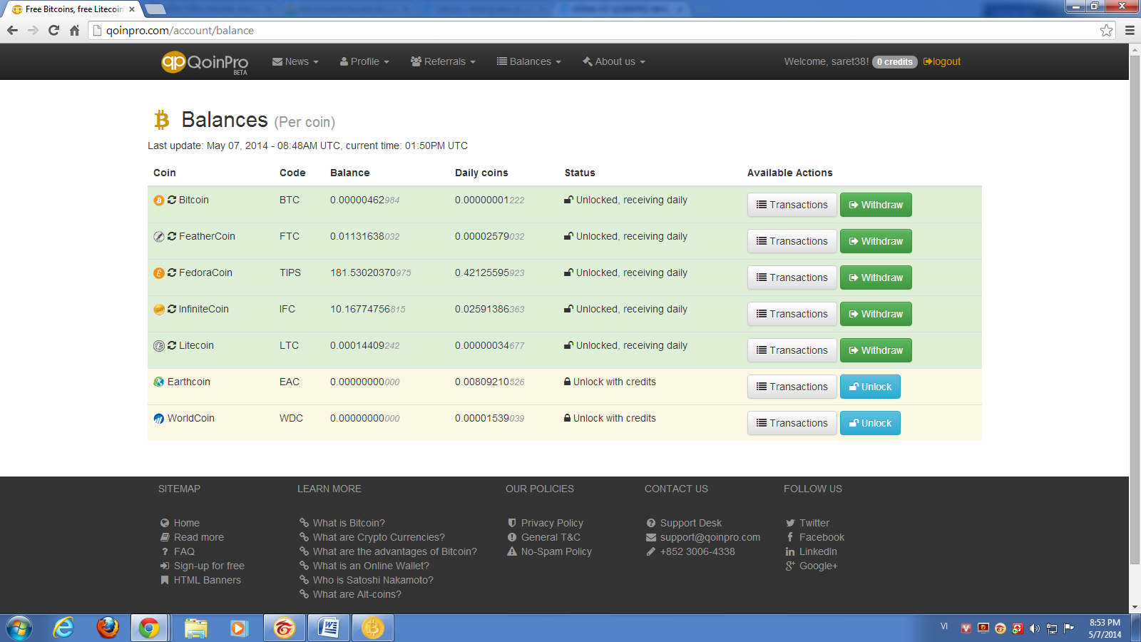 Ở đây, nó tặng rất nhìu loại tiền khác nhau gồm:Bitcoin, FeatherCoin, FedoraCoin, InfiniteCoin, Litecoin....