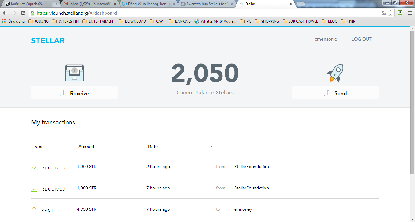 Đăng ký stellar.org, bonus ngay $0,1 qua WMZ.
