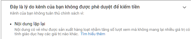 ---> Nội dung đó gọi là trùng lặp và ít sáng tạo ---> Youtube không thích nên tắt kiếm tiền để ép bạn phải tự sáng tạo video ra nhé