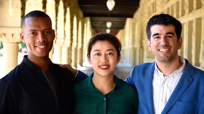 Hình ảnh trên là Teamdev. Họ nhóm học sinh đã tốt nghiệp Stanford phát triển tiền điện tử cho người dùng SMARTPHONE để tăng khả năng truy cập (Pi Network). (Từ trái sang phải) Vince McPhilip MBA, Chengdiao Fan Ph.D và Nicolas Kokkalis Ph.D. Họ là đồng sáng lập mạng lưới tiền điện tử Pi Network với nhà nghiên cứu sinh viên Aurélien Schiltz.