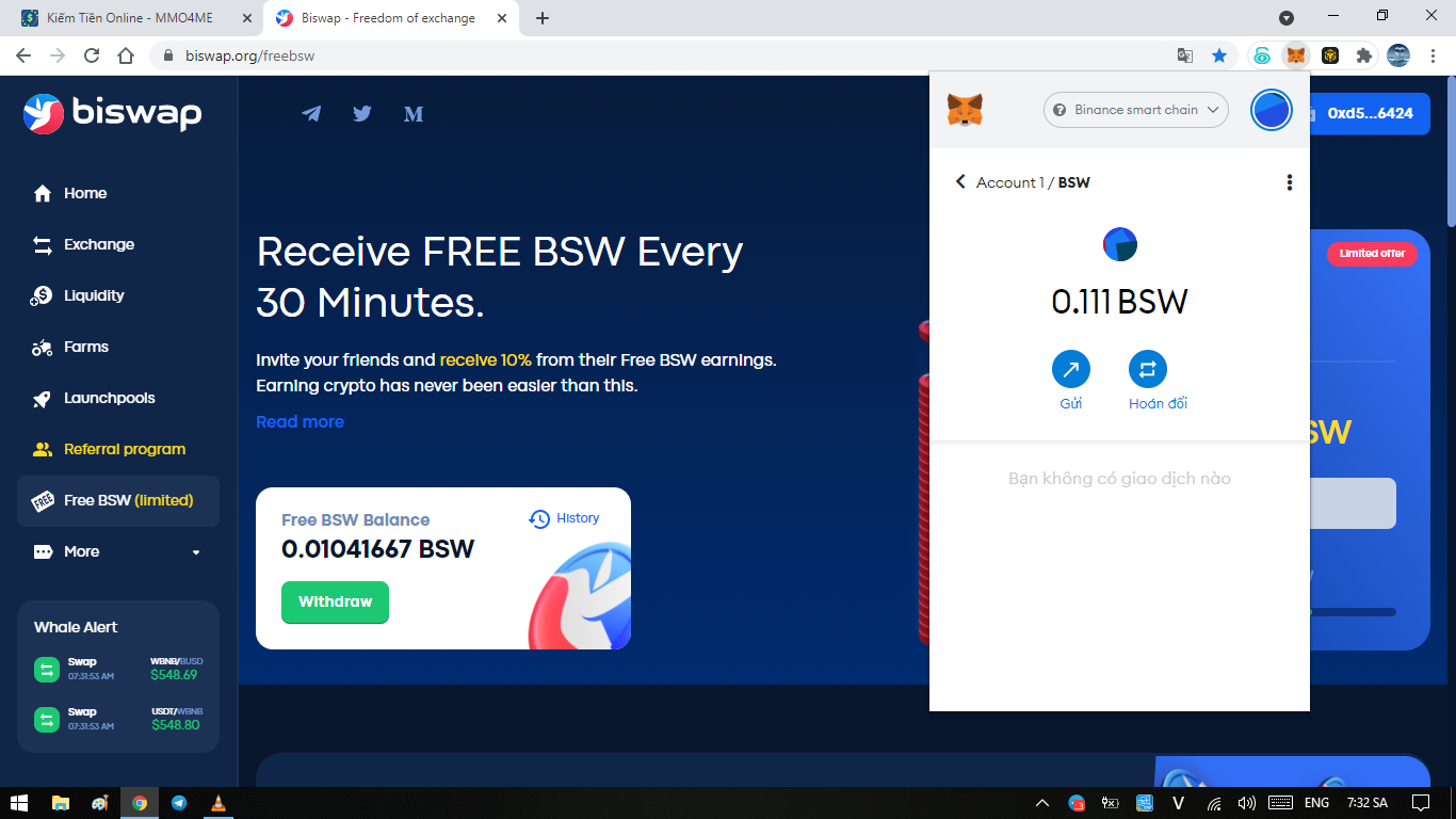 Chú Ý: 30p vào claim 0.1 BSW (ấn nút Harvest để đào)
