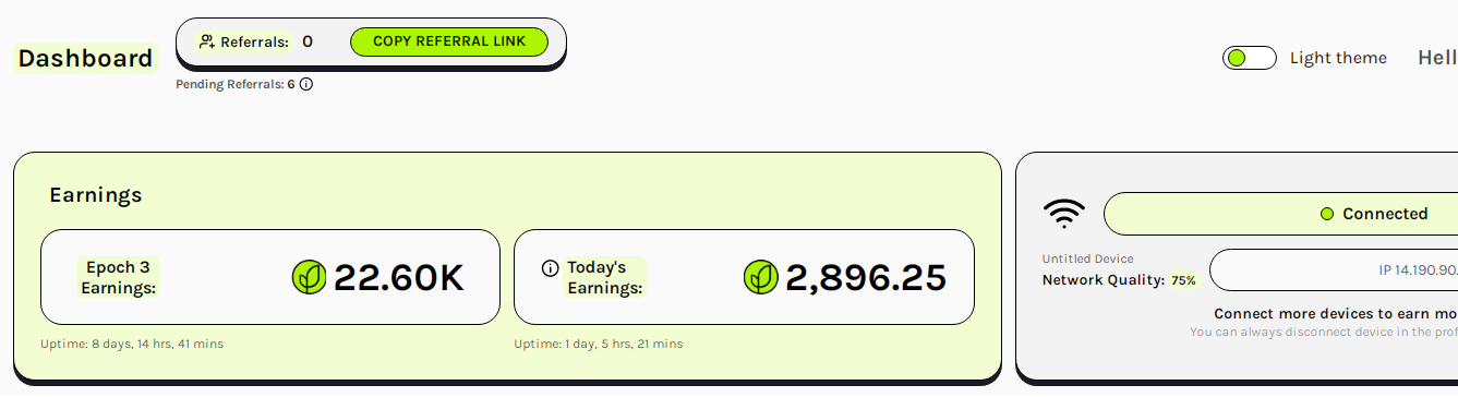 bình thường chờ tổng kết mới ra điểm thật, còn điểm hiện trên dashboard ảo thôi.e mới vào hôm qua chạy mỗi 1 ip ở nhà đc hon 1k mà bảo trì xong nó trừ hết point luôn![]()