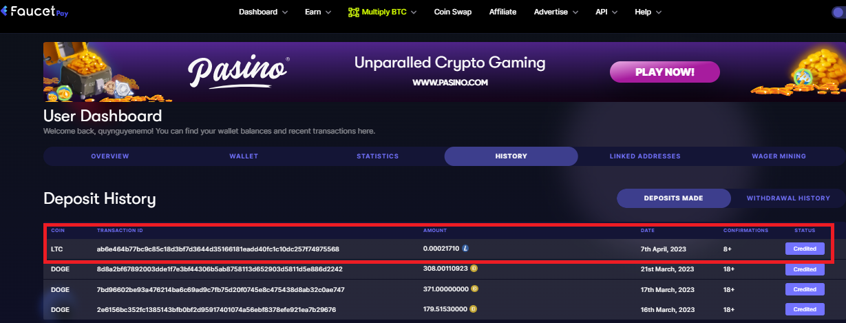 Đây là mình rút về ví Faucetpay: