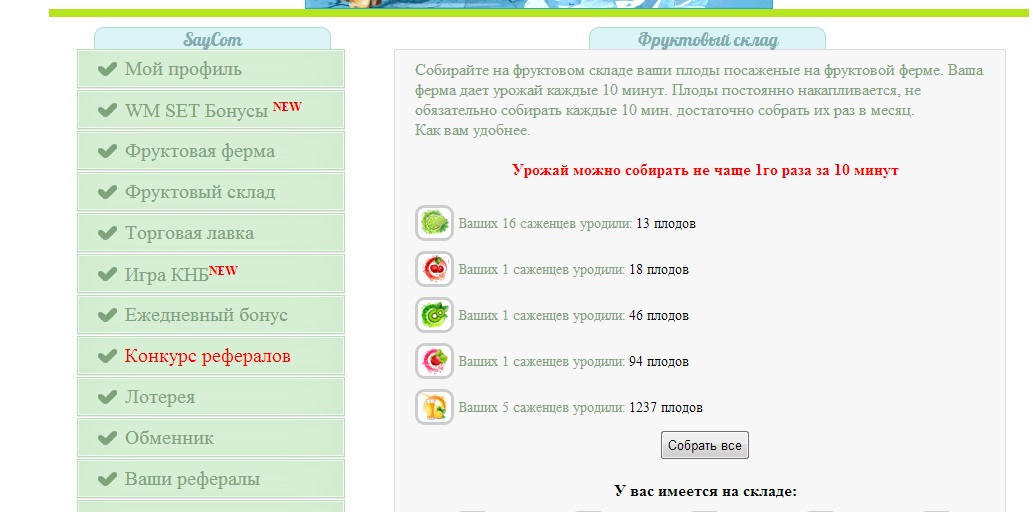 Vườn cây sau 1 tuần nạp 1k rub :D