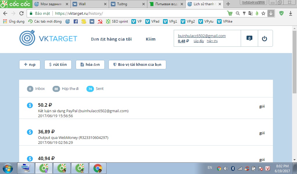 cái vktarket được 25rup r mà ko tạo được ví wmr