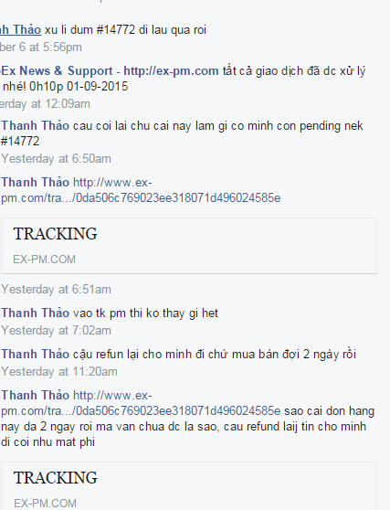 View attachment 62558 Tình hình là mình mua Pm của thằng admin này, support trên fb thì cũng không trả lời coi như không có chuyện gì xảy ra, http://www.ex-pm.com/tracking/0da506c769023ee318071d496024585e