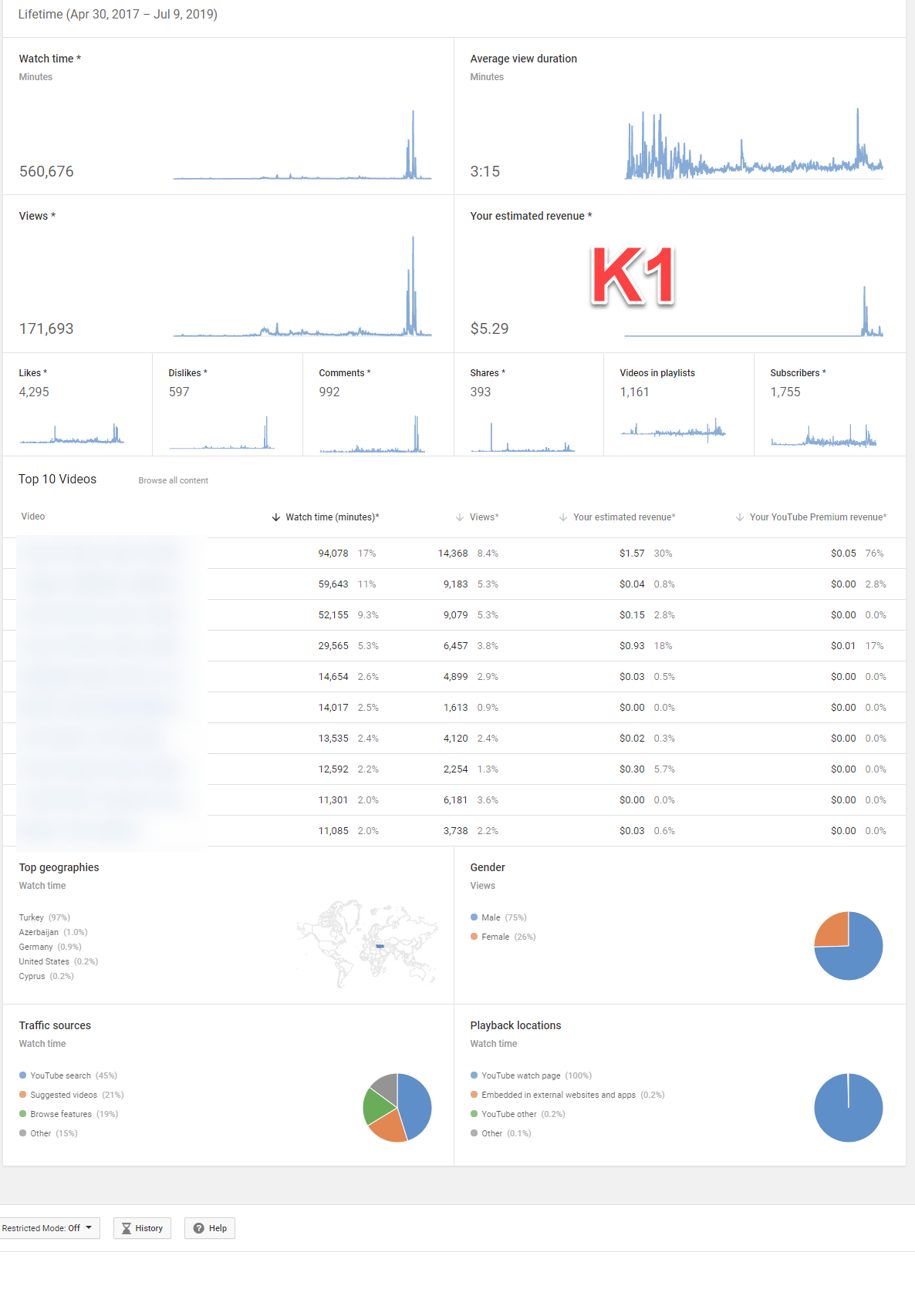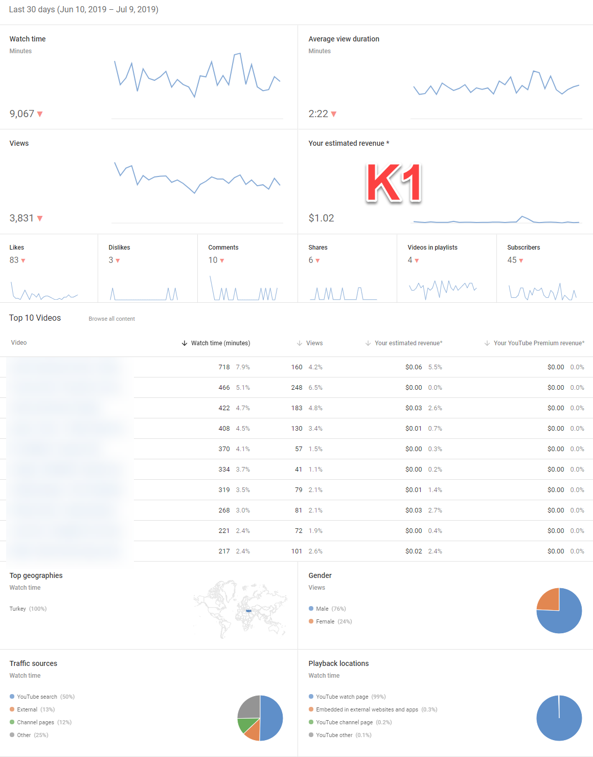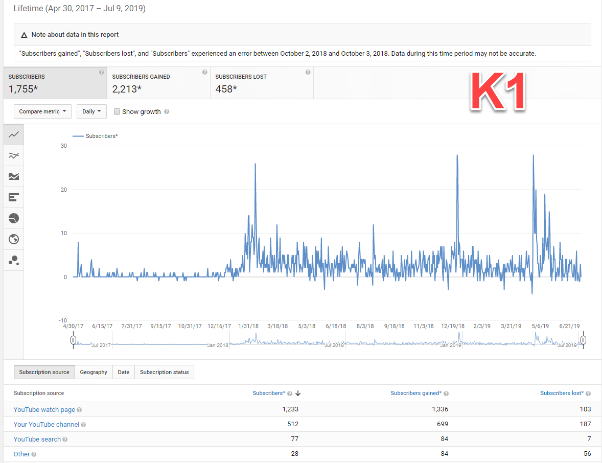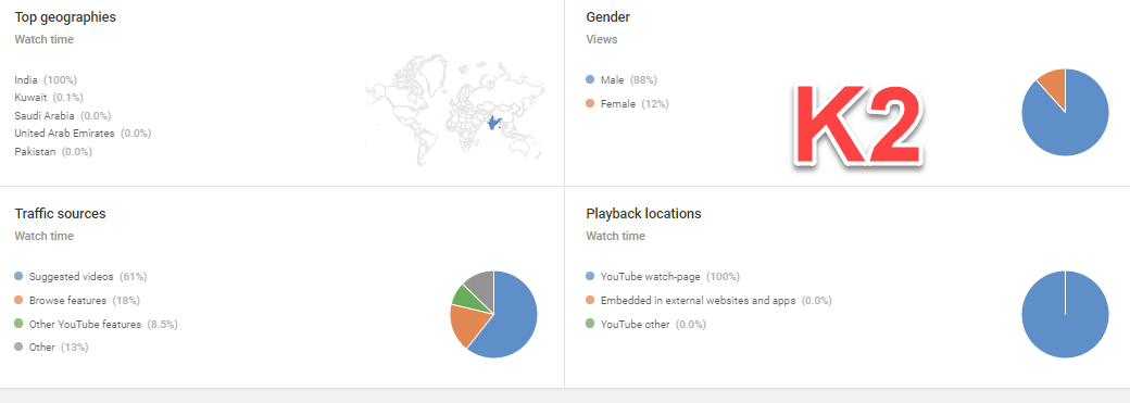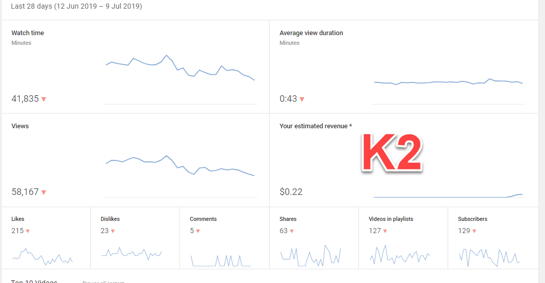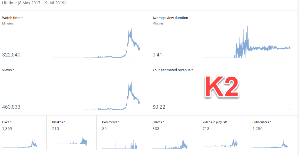 K2 : Kênh vlog 2017 , Có mail gốc, thư chúc mừng , BKT ngày 8/7/2019. Kênh có tỉ lệ đề xuất cao hơn 60%.