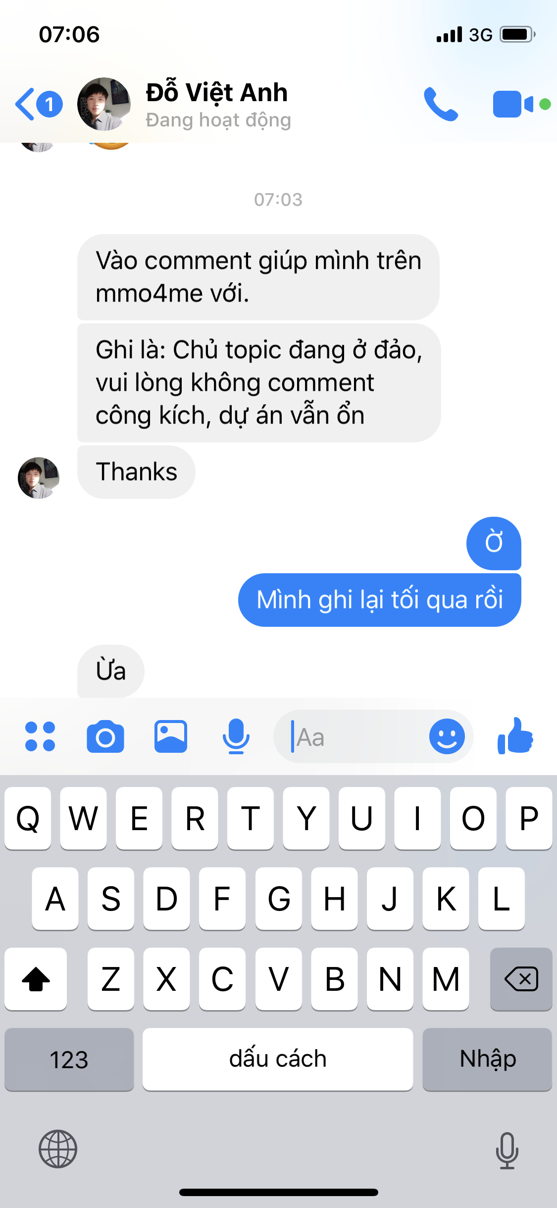 Mong mod @animax1991 xem xét xử lý trường hợp này. Bạn này luôn luôn khích bác, và công kích topic của mình và 1 số topic khác. Bạn ấy nói nhưng không đưa ra được bằng chứng. Theo luật của Forum thì bị xử lý thế nàoNghe tin tức vậy biết mùi trong tháng 10 scam rồi.