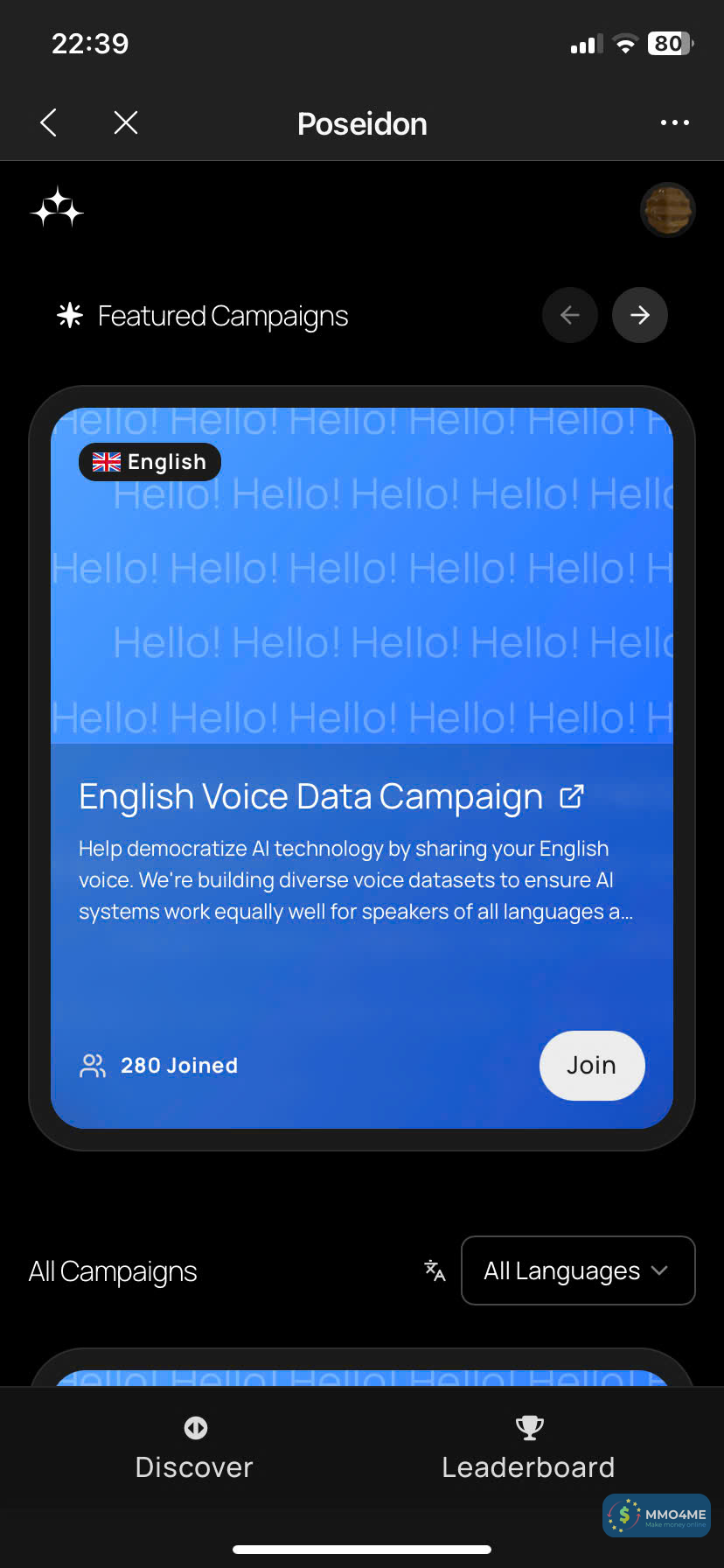 Kèo này khá là khác so với các kèo Depin khác đó là sẽ thu âm giọng đọc của người dùng để là dữ liệu huấn luyện cho AI. Nhận nhiệm vụ trên màn hình, ghi âm đọc lại, và nhận point.