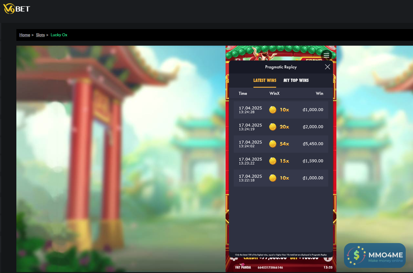 Tỉ lệ RTP của game LUCKY OX : 96.55%