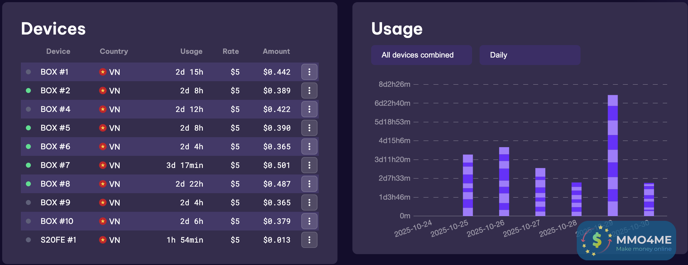 Mình có 6 thiết bị mà onl k đều nhưng vẫn được tính hơn 5day/ngày