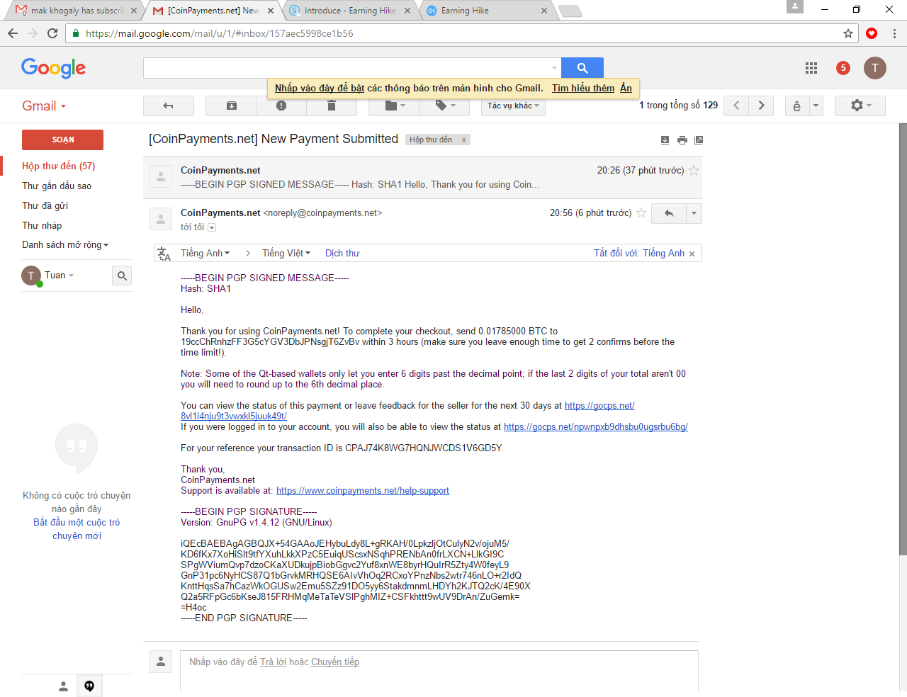 The amount of 0.5 USD has been deposited to your Perfect Money account. Accounts: U10849335->U4888473. Memo: Shopping Cart Payment. Withdraw to pbhyipsinfo from earninghike.com.. Date: 10:24 09.10.16. Batch: 149577672.