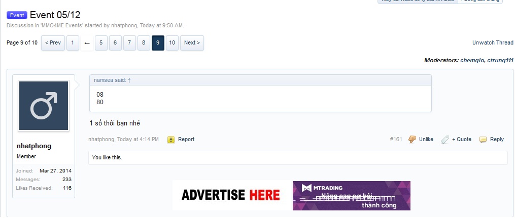 Mình sẽ trao cho bạn giải khuyến khích là 1 áo phông nhé.Inbox cho mình địa chỉ nhận áo,tên người nhận và số điện thoại.1 thời gian nữa bên chuyển phát sẽ gọi điện xin số cmt làm thủ tục hải quan và ship về tận tay bạnĐêm qua nằm mơ và e đã trúng.... Nhưng không lượm đc cái event của thớt....View attachment 42840