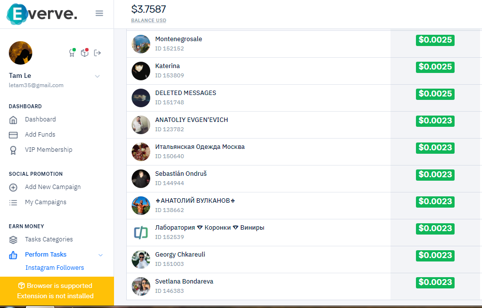 Chắc em tìm site khác chơi á bác chứ site này làm 1000 tasks mới được $1 chắc hư máy luôn mấtNick tên gì bạn