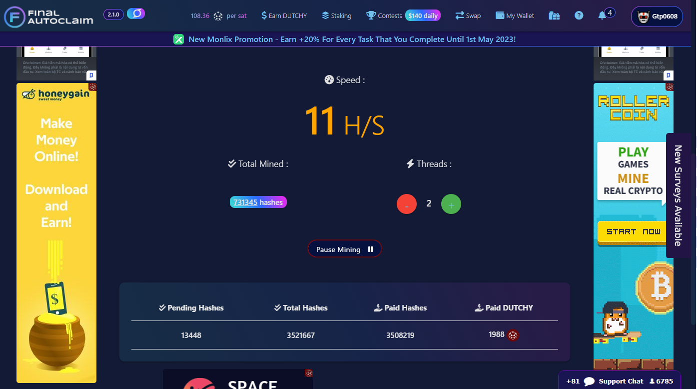 Cho đào nhiều coin khác nhau như :BTC,SOL,ETH,DOGE và có SPACE token của vòi nữa