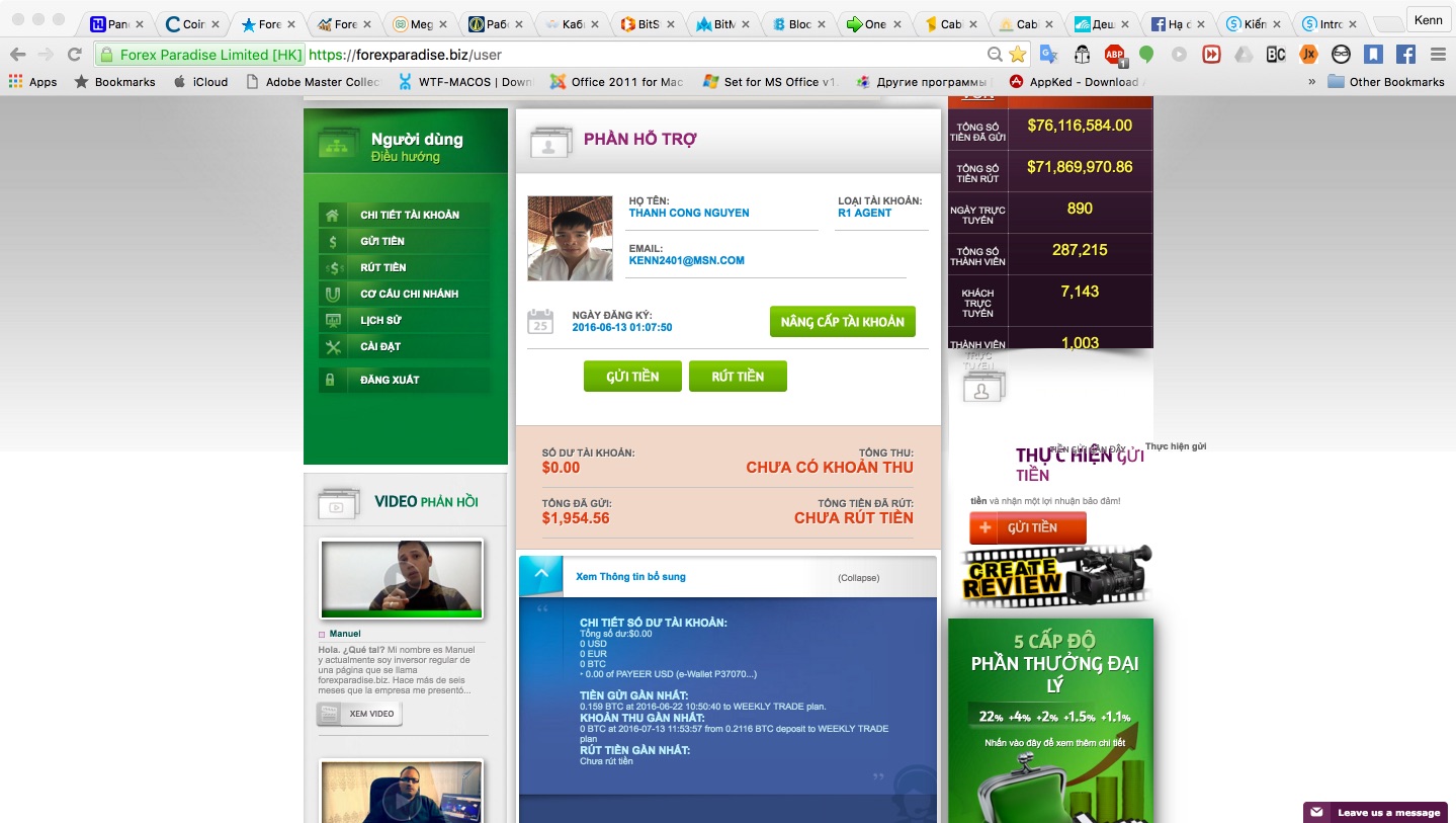 The amount of 1 USD has been deposited to your Perfect Money account. Accounts: U6977350->U1896276. Memo: API Payment. Withdrawal to user hyipdollar from Forex Paradise LTD was successfully processed!.. Date: 00:01 20.07.16. Batch: 140278914.