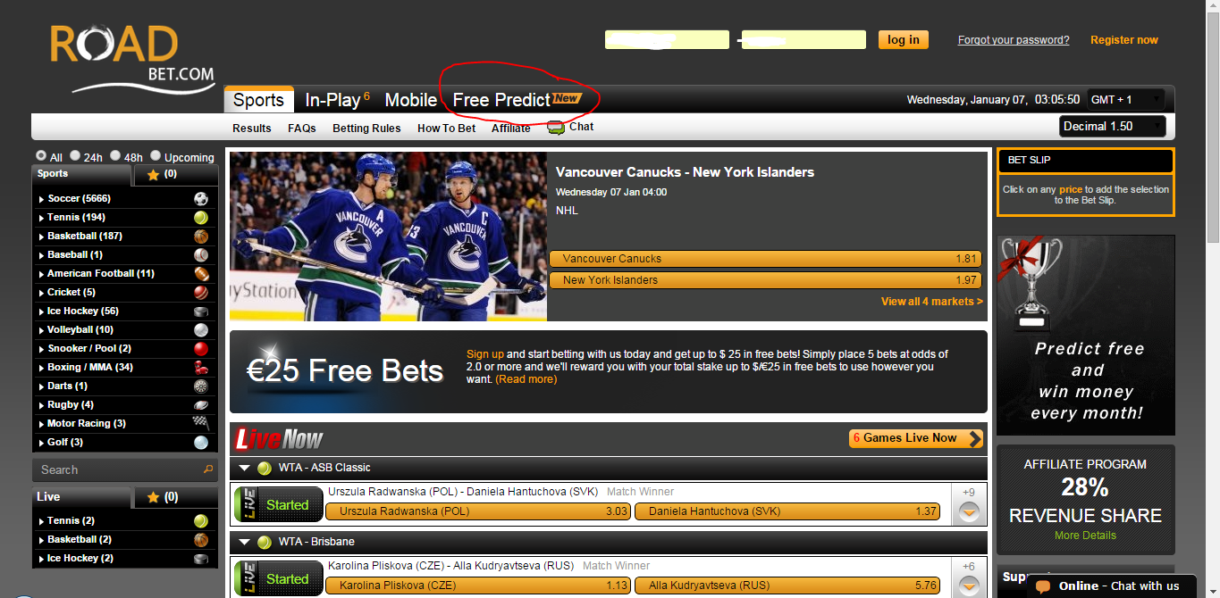 Bước 1: Các bạn vào trang Roadbet.com. Chọn mục Free Predict.