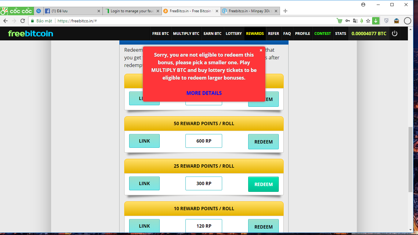 - Bắt buộc phải đủ 1200 RP để đổi mỗi ngày và các bạn sẽ có dư dả RP để đổi Bonus BTC. Đối với account không có hoặc ít ref thì tôi đã tính toán CHỈ NÊN ĐỔI MỨC 500% bonus RP (1600RP/lần) là tối ưu nhất (1 tuần đổi được tối thiểu 5 lần).