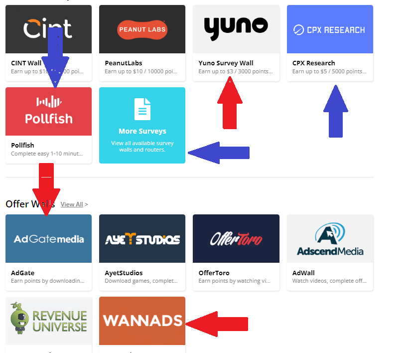 Trang chủ sau khi đăng nhập: NÊN làm khảo sát của Yuno (tất cả ô trên 500 điểm) và của Adgate MediaWannAds. Riêng CPX ResearchPollFish có thể check một ngày 3 lần vào 7-8h sáng, 5-6h chiều và 9h30-10h30 tối là các khung giờ hay xuất hiện khảo sát.