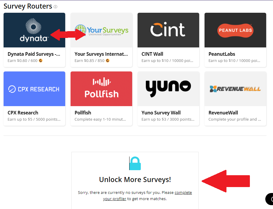 Nên làm khảo sát của DynataYoursurveysdanh sách khảo sát được hiển thị ở phần dưới cùng của trang (vào giờ cao điểm thường có)