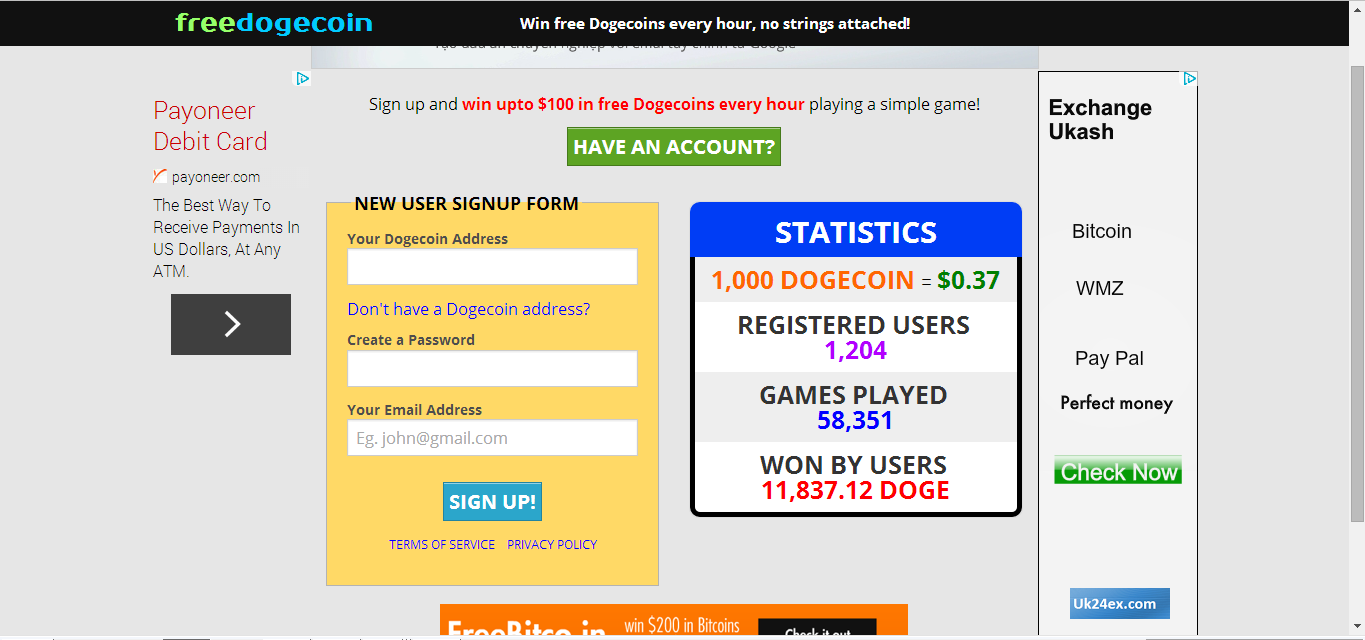 giao diện đăng kí và đăng nhập hoàn toàn giống với Freebitco.in