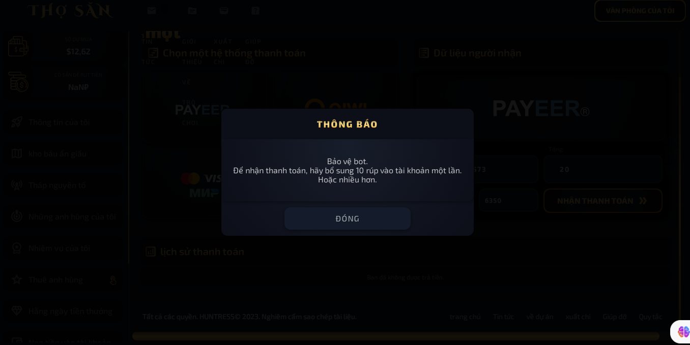 Huntress thì lời ít nếu không cày. 4 ngày được 1 rub