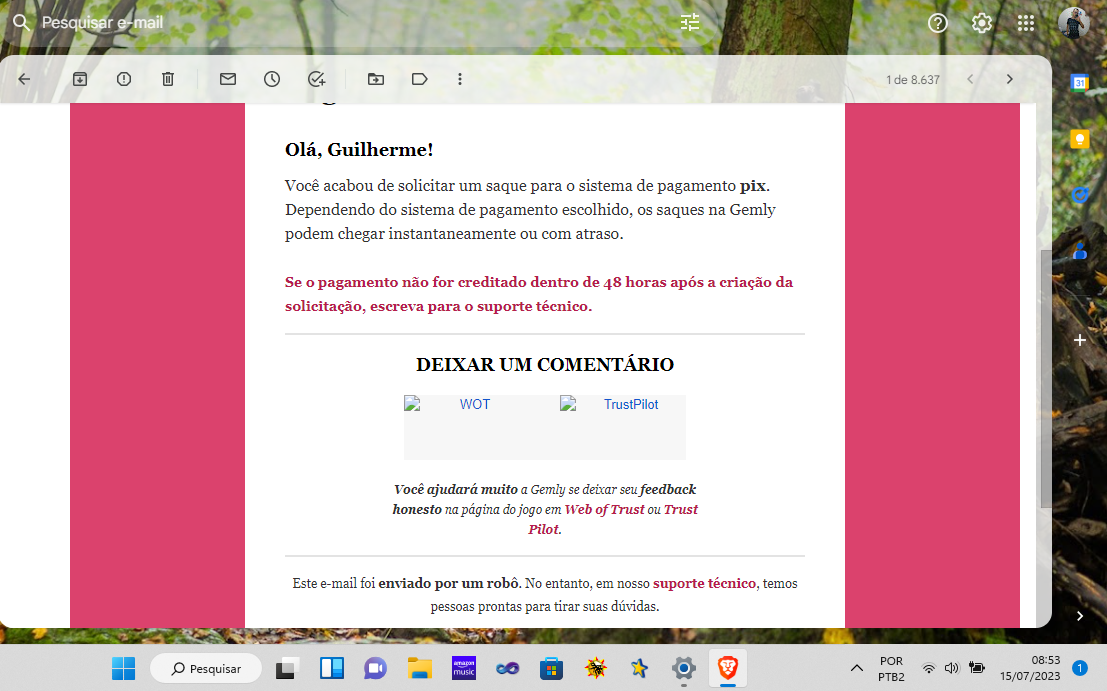 Comment: Pago para el jugador Yoisbel del juego Gemly. ¡Gracias!