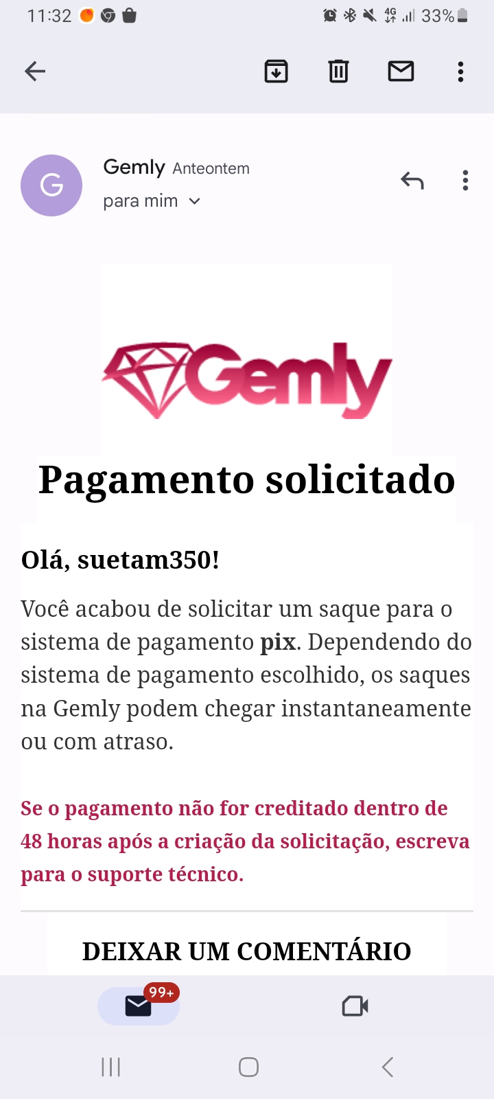 Comment: Pagamento para o jogador Lacoste007 do jogo Gemly. Obrigado!