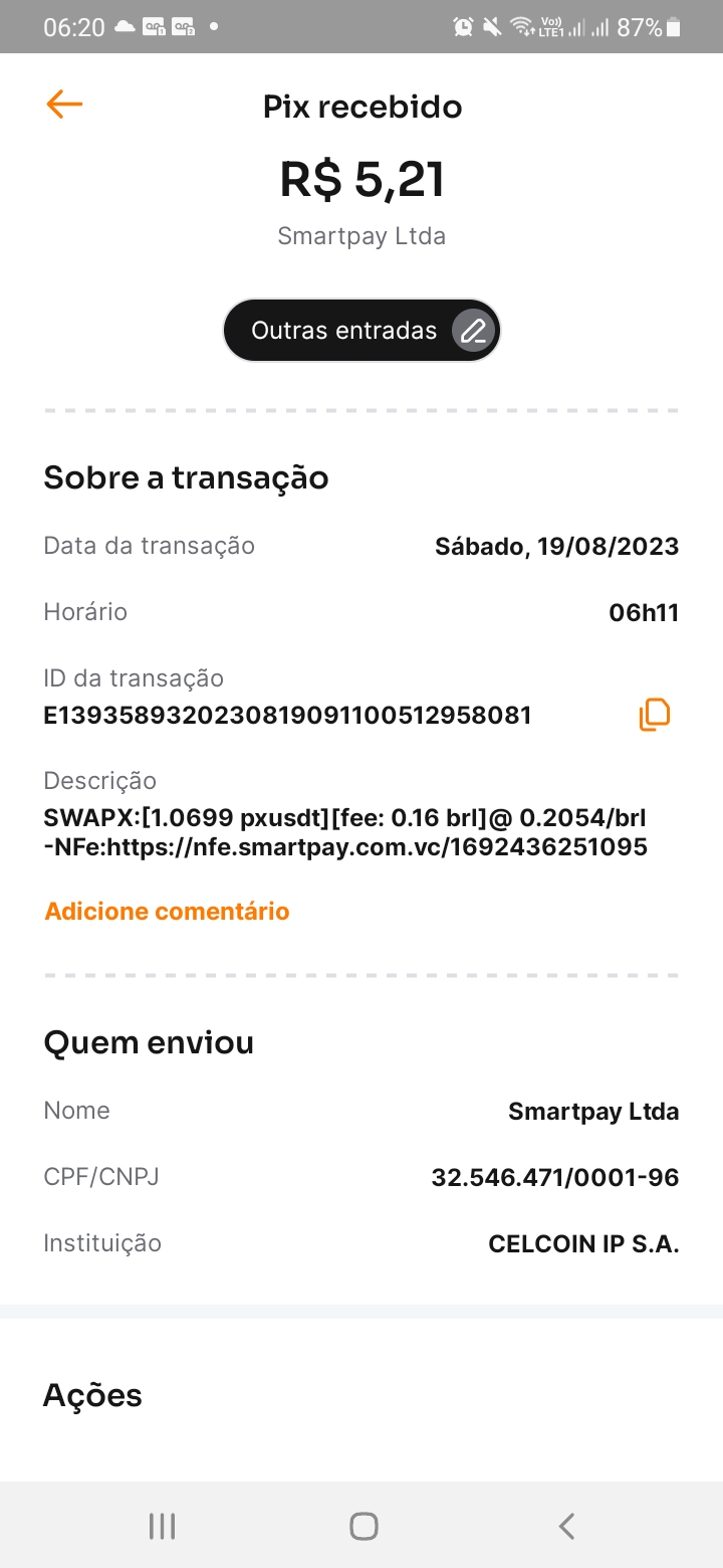 pagamento Recebido instantaneamente , como de costume,