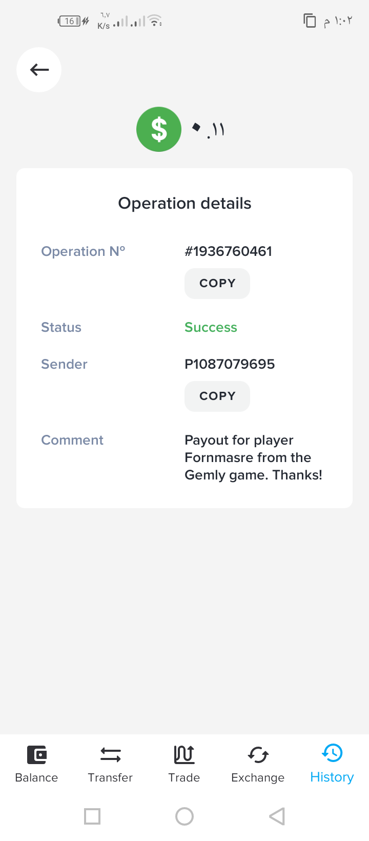 Комментарий: Sklim спасибо за выплату из игры Gemly!