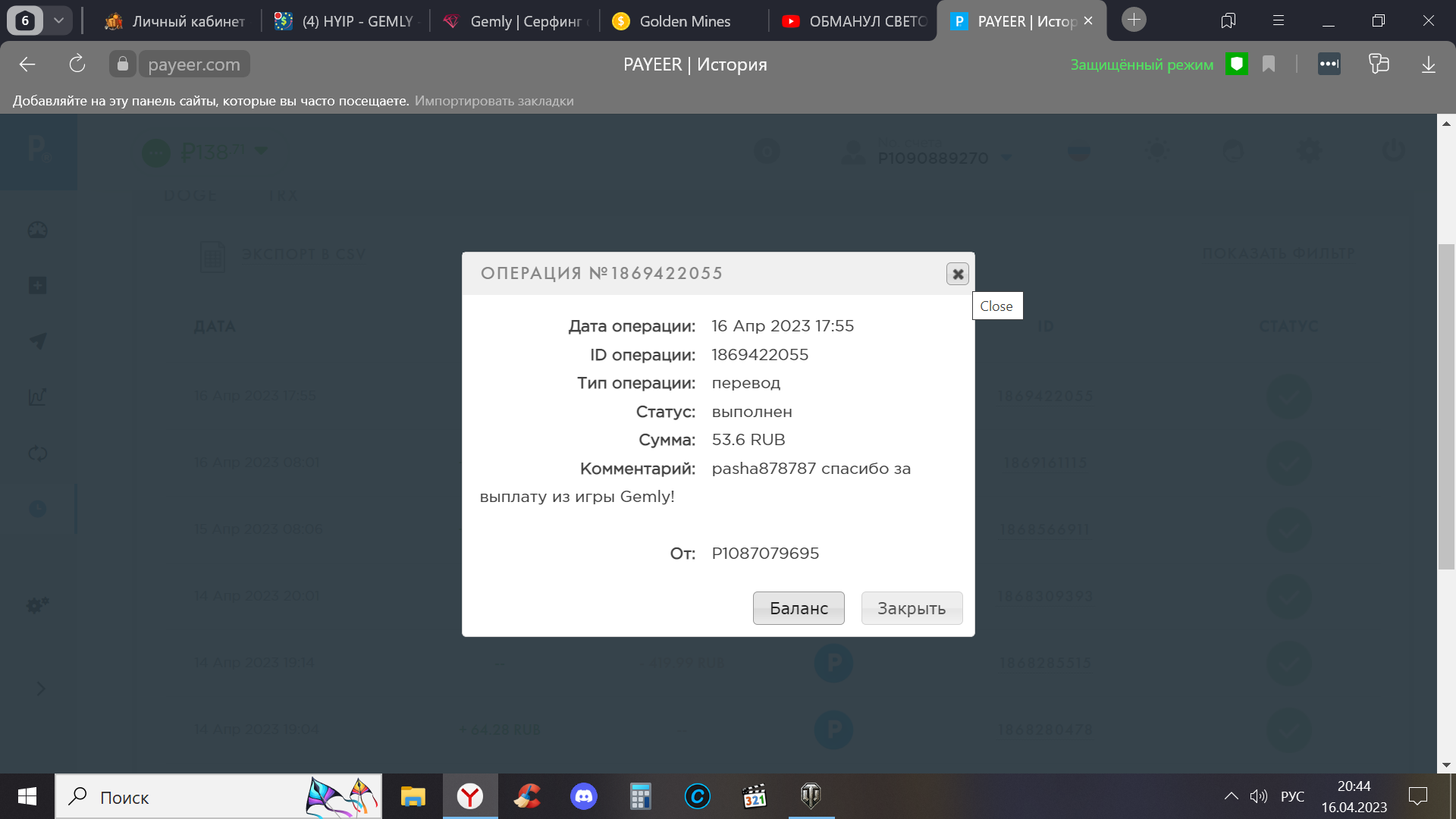 Дата операции: 16 Апр 2023 21:01