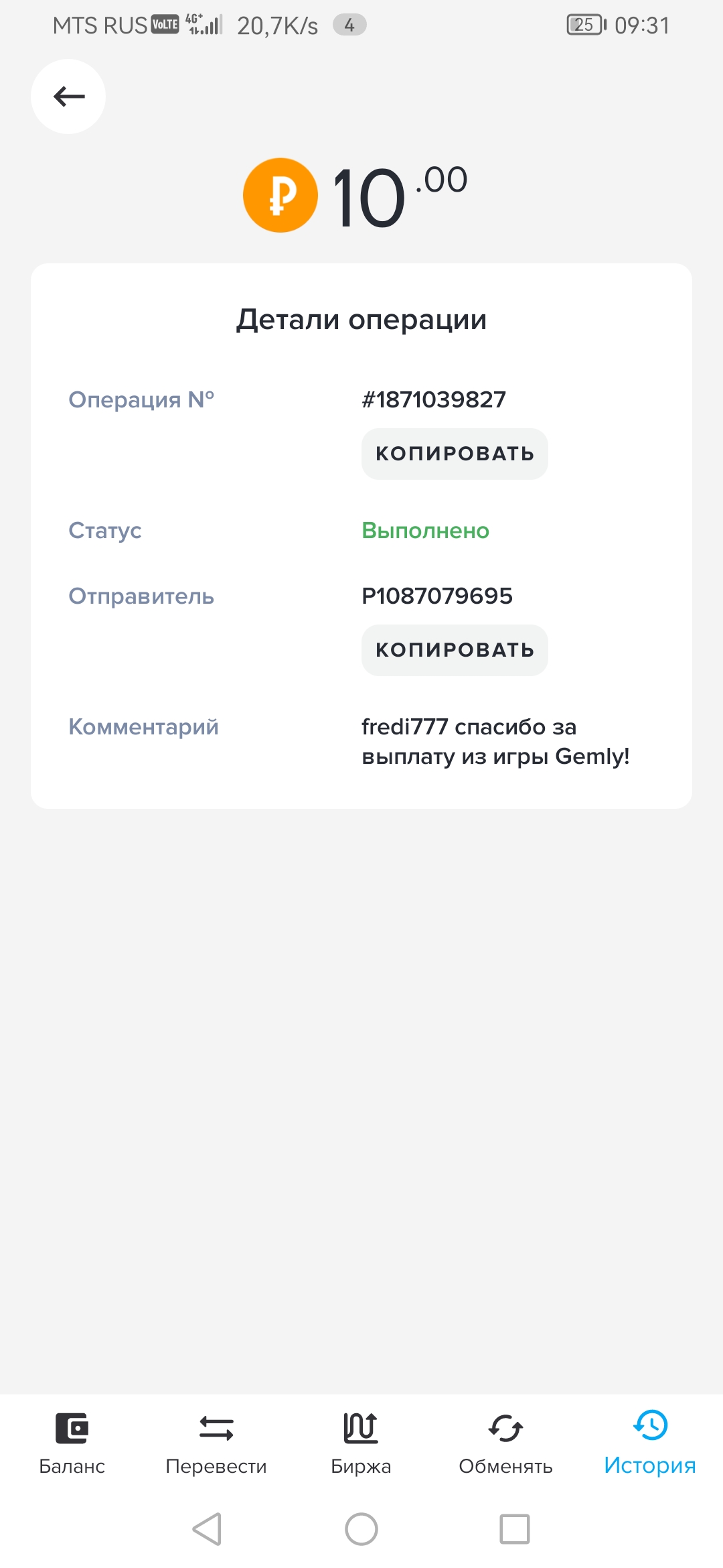 Комментарий: Admirer спасибо за выплату из игры Gemly!