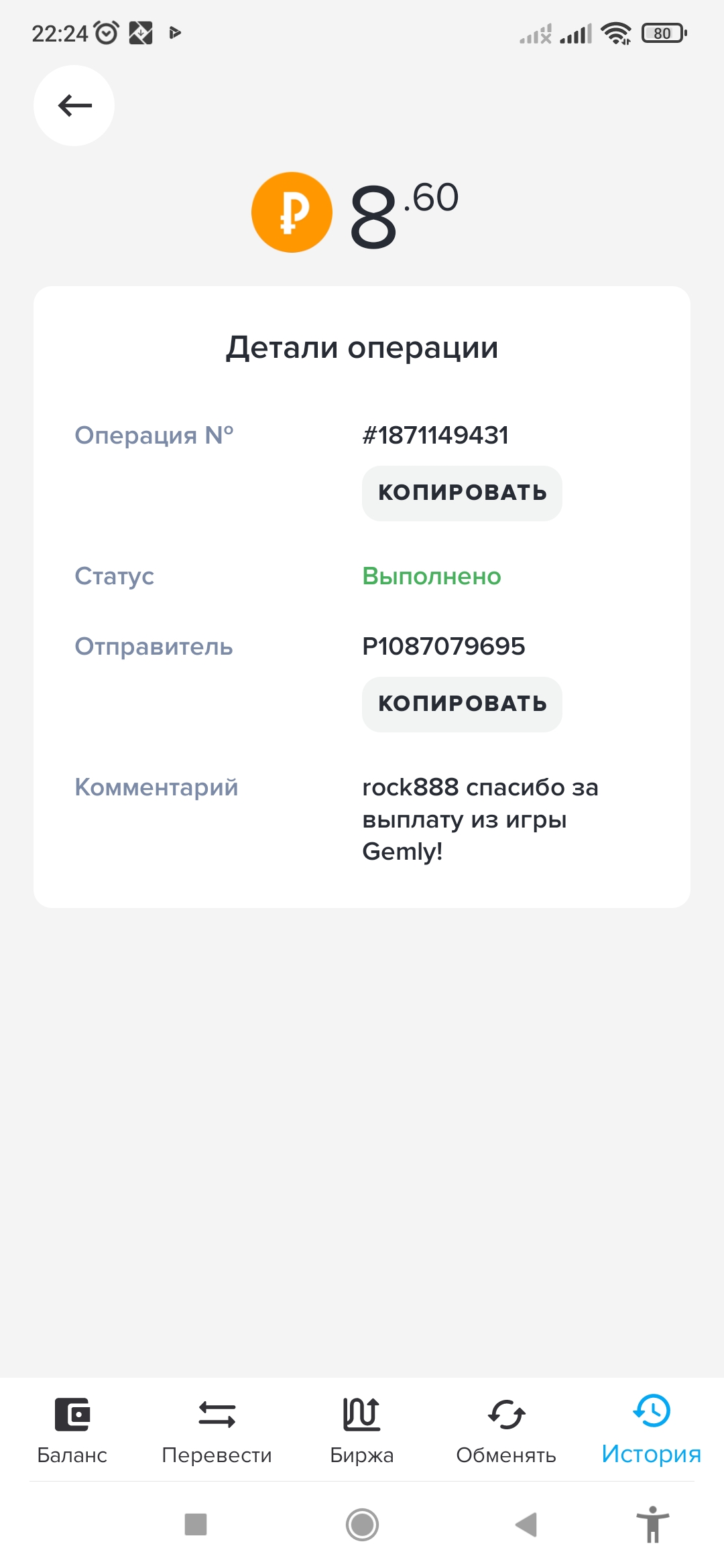 Комментарий: nastyboy140791 спасибо за выплату из игры Gemly!