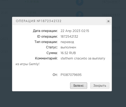 Комментарий: Bastylod спасибо за выплату из игры Gemly!