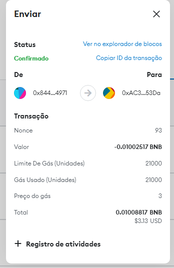 Id de transação: 0x6dc49f4fabcda5788d1946f6e689c8bfe7e5e53c3d79ee79fdbdcc6dc482101f