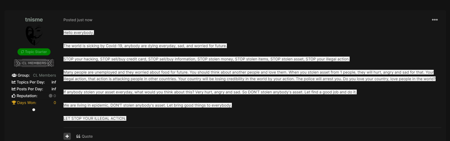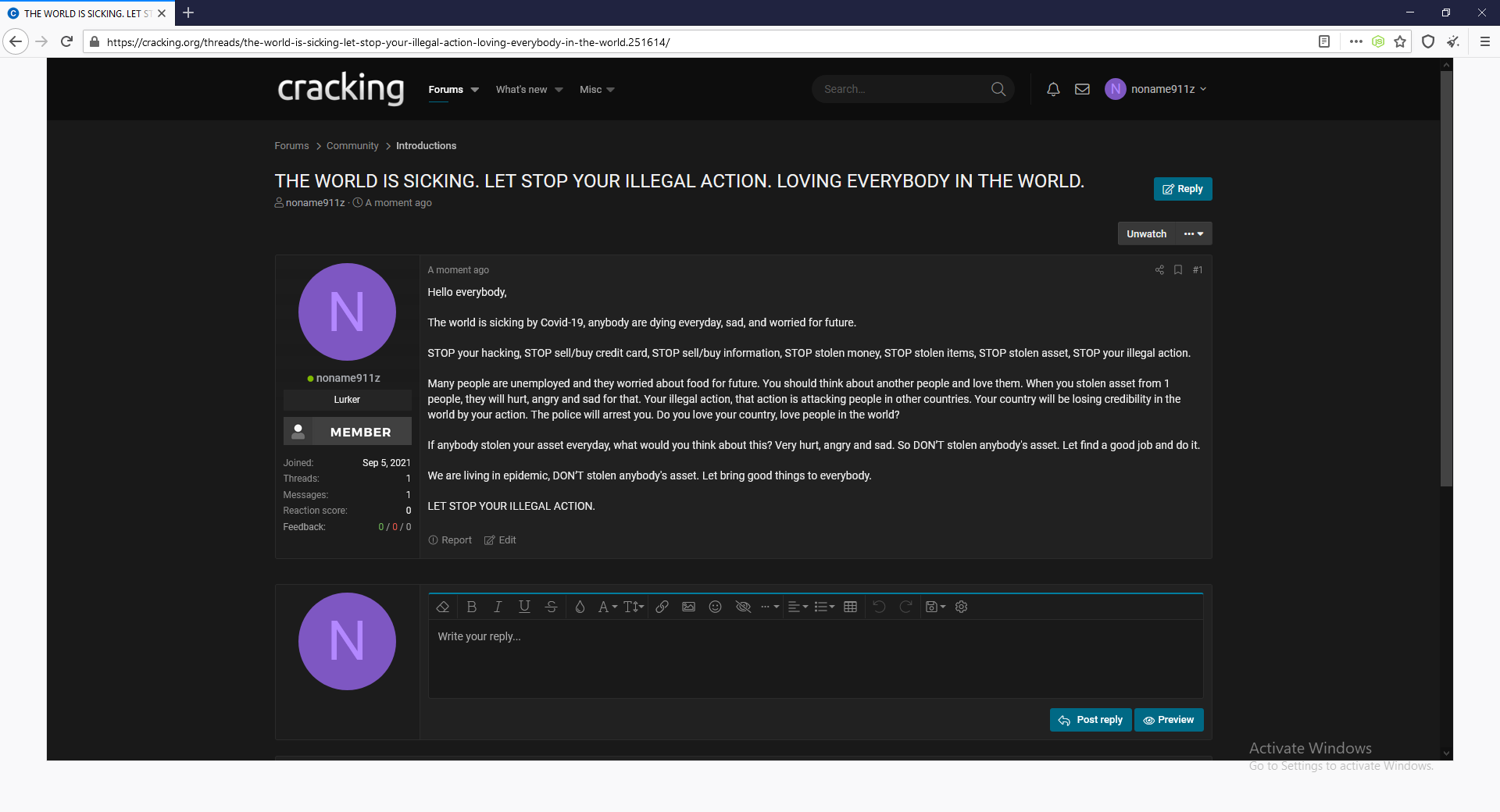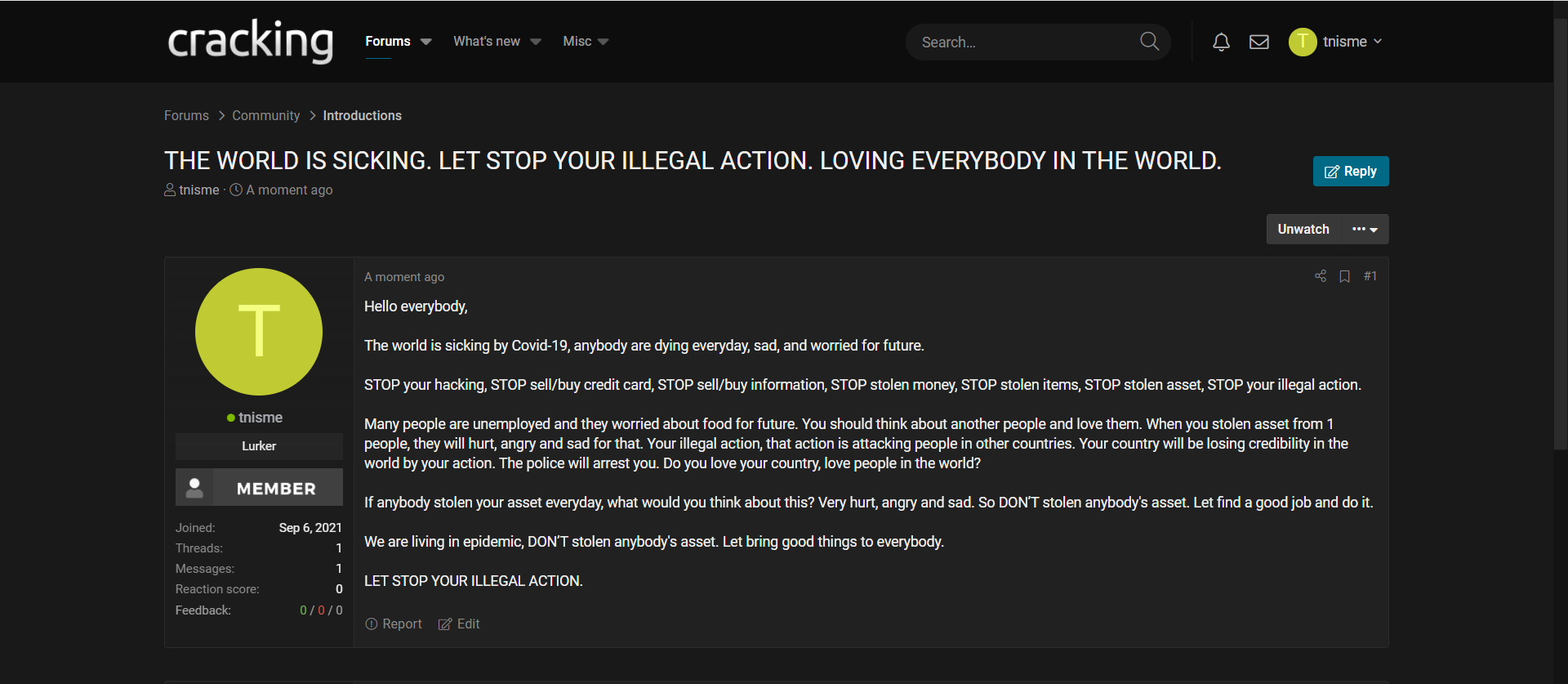 11) https://www.crackingpro.com/index.php?/topic/138127-the-world-is-sicking-let-stop-your-illegal-action-loving-everybody-in-the-world/