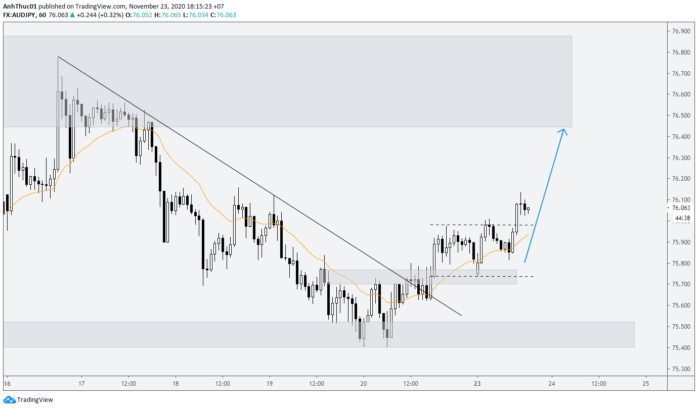 AUDJPY tiếp tục tăng, mục tiêu hướng đến vùng kháng cự 76.500 phía trên