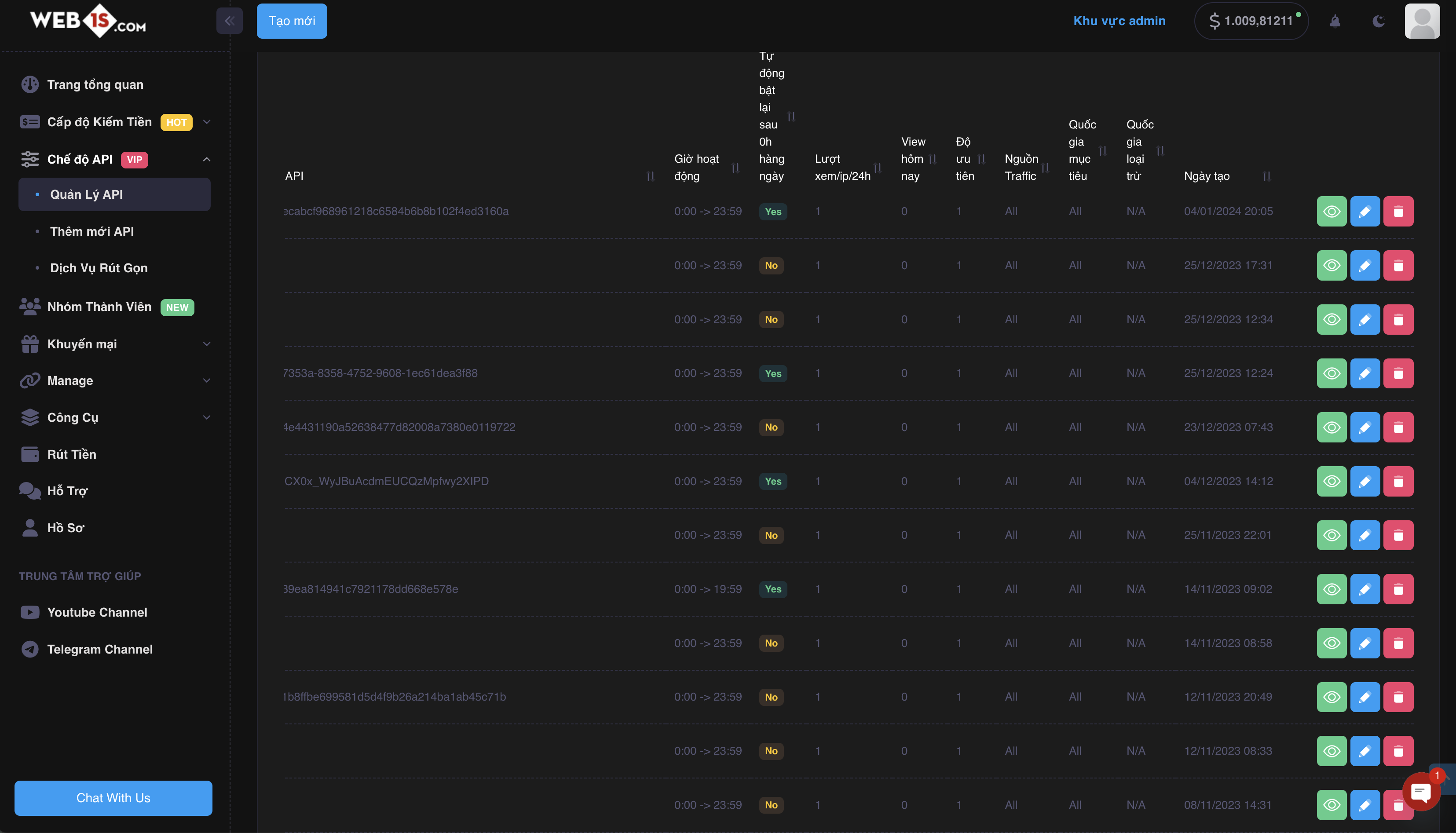 Giới thiệu trang quản lý 100, 1000 site rút gọn link bằng API cực kỳ tiện ích.