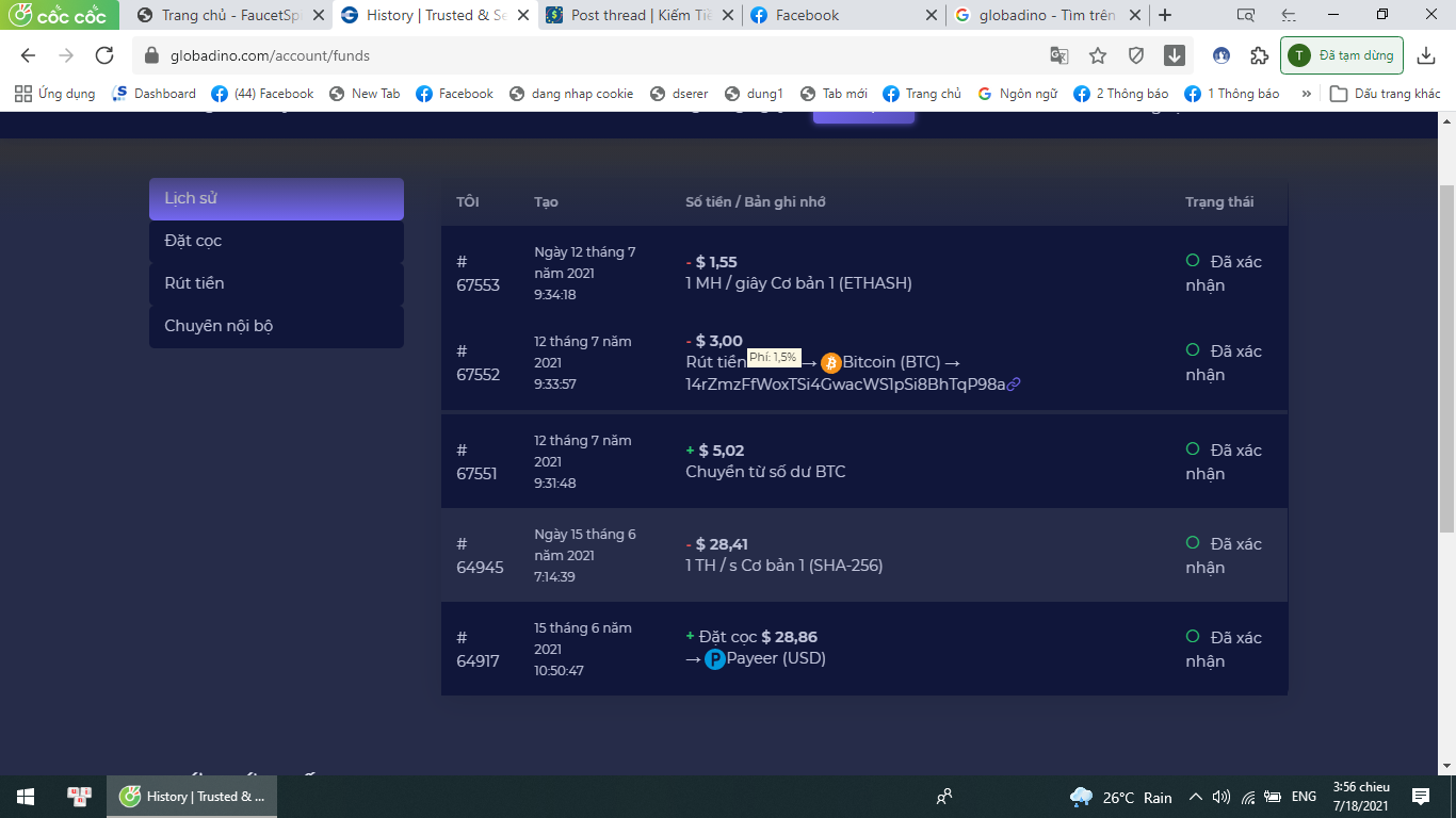 - Min chuyển tiền lên ví rút là 5 đô, min rút từ ví cá nhân về binance,VNDC,ETH,Faucetpay...là 1 đô