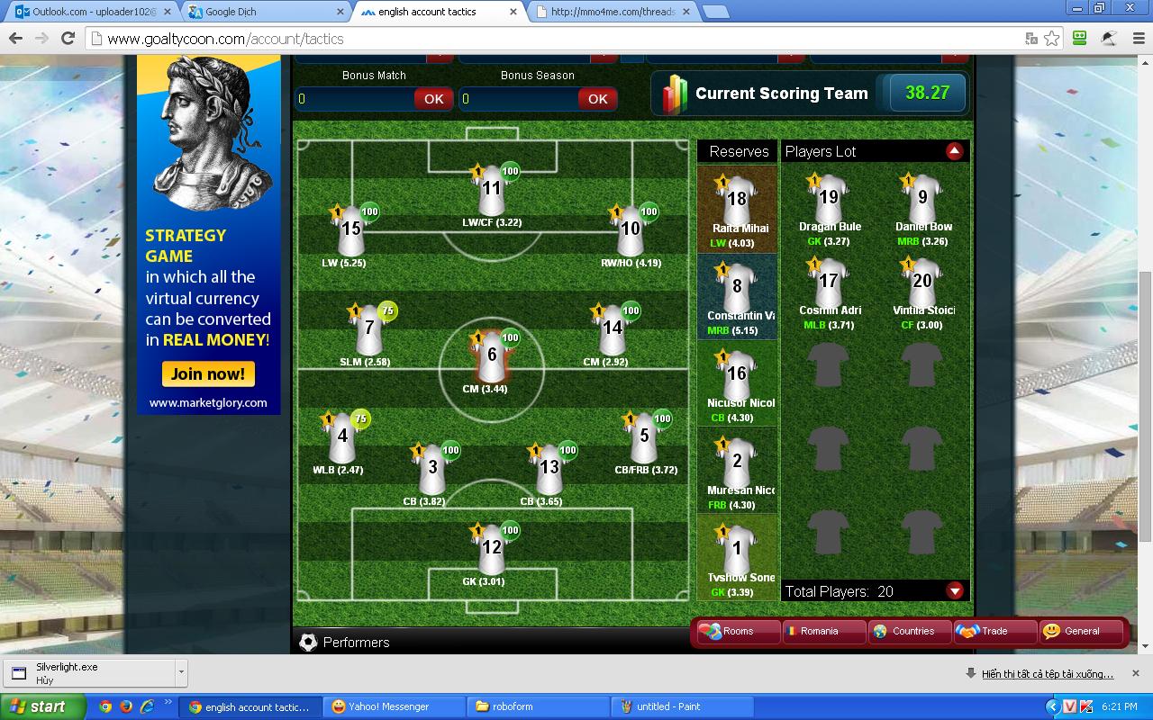 do bạn trian cầu thủ nên giảm engyne, giảm engyne thì giảm ScoringCurrent Scoring Team 51 training tới chiều vào xem lại còn có 38.27 là sao các bác nhỉ?. mới tạo mới chơi ko hiểu gì hêt. bác chủ thớt chỉ cặn kẻ tí đi. mình gà mờ quá![]()