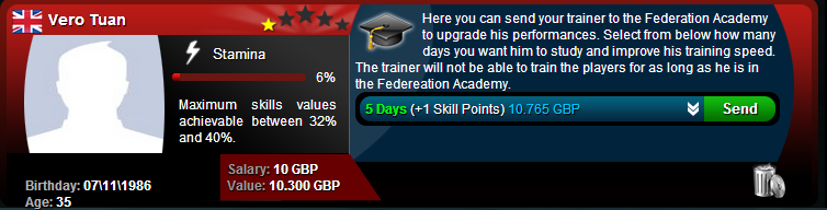Anh em nào có ý đinh đợi cầu thủ già lên làm huấn luyện viên thì nghĩ lại nhé , củi lắm , chỉ số cao nhất của nó khi là cầu thủ là 15 mà có thấy đâu đâu