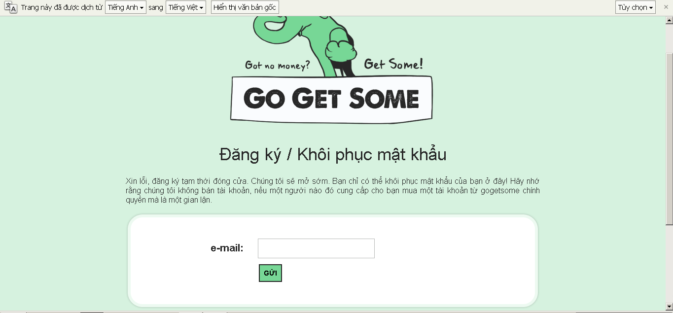 các bạn ơi chả là mình có được một bạn cho một tài khoản go get some làm đêm , mà khi payout thì cần phải confirm bằng mail mà tớ hiện không liên lạc được với cậu này !!!!! Vậy tớ phải làm sao để thay email đó thành email của tớ để nhận tiền về đây :(