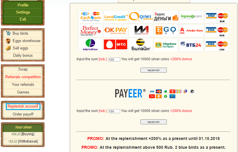 Comment: Paying off for the user from the project golden-birds.biz