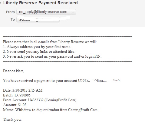 Memo: Withdraw to diquaniemdau from ComingProfit.Com