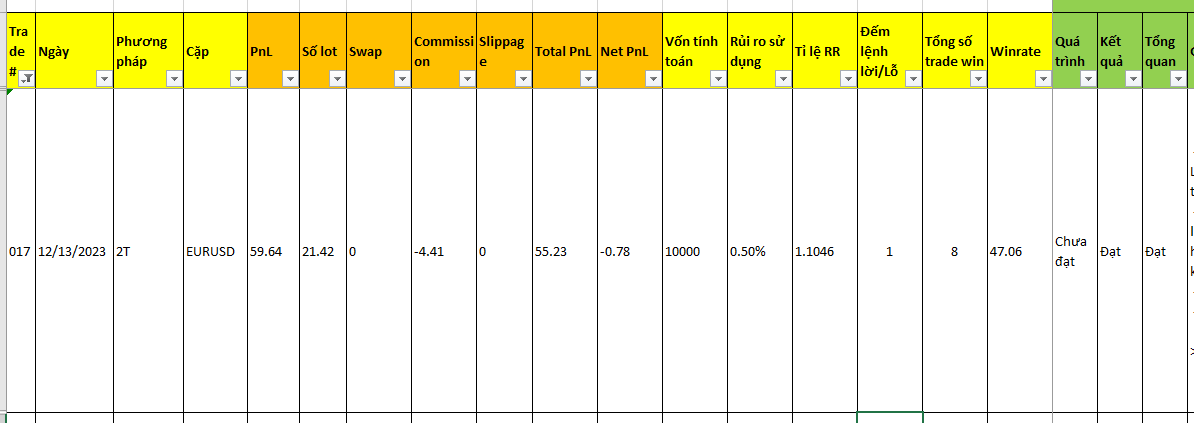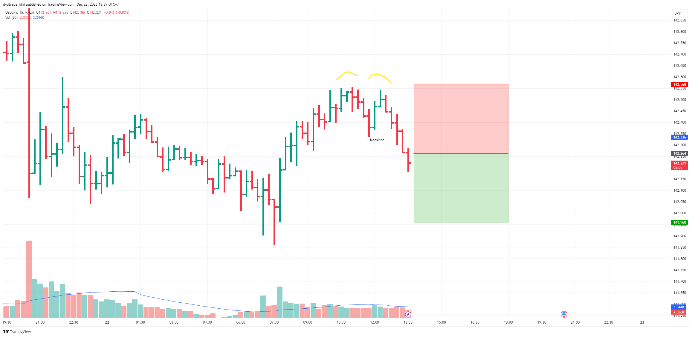 Trade 017: EURUSD, 2 đỉnh, 13/12/2023: